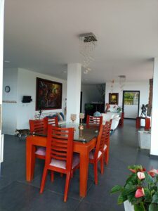 Esta propiedad, con un área de terreno de 23.380 MT2 y una construcción total de 700 MT2, no es una, sino un conjunto de tres casas muy cómodas y bien distribuidas. La Casa Principal, de 280 MT2, ofrece una amplia sala-comedor, cocina integral con mesones en granito, y un diseño con 4 alcobas, cada una con su baño privado.